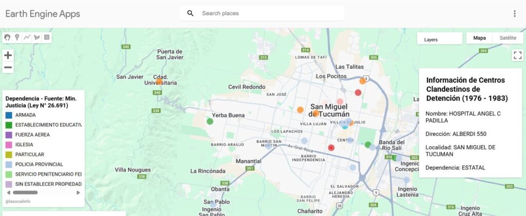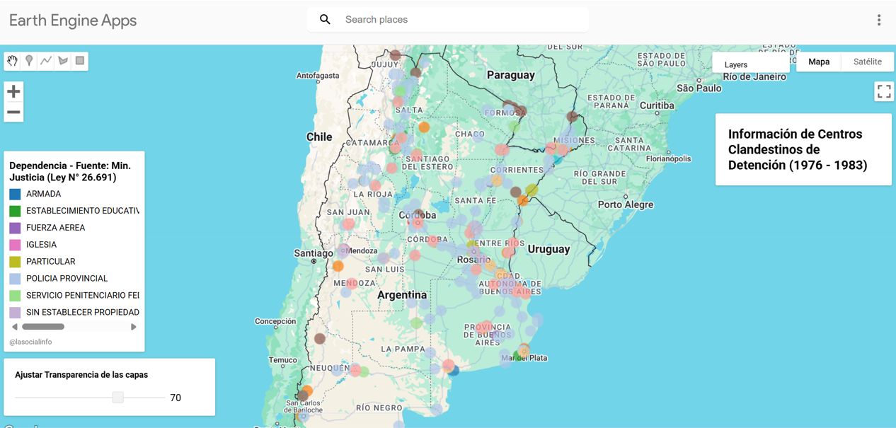Cada geolocalización de un CCD que no había sido anteriormente realizada, supuso una larga búsqueda que lleva necesariamente datos, testimonios, fotos, videos, etc; que nos acercan a la localización exacta o cercana. Por ejemplo, buscar dónde estuvo localizado un CCD en Tandil, nos lleva a descubrir un video donde los vecinos y organizaciones de DD.HH. lo señalizan por primera vez en 2010 o la exploración sobre la ubicación exacta de un puesto de Prefectura en la frontera de Misiones, nos hace triangular una foto encontrada en la web con la imagen satelital del muelle de dicho puesto, reconocido por su forma. Así se hace un mapa que no existe.