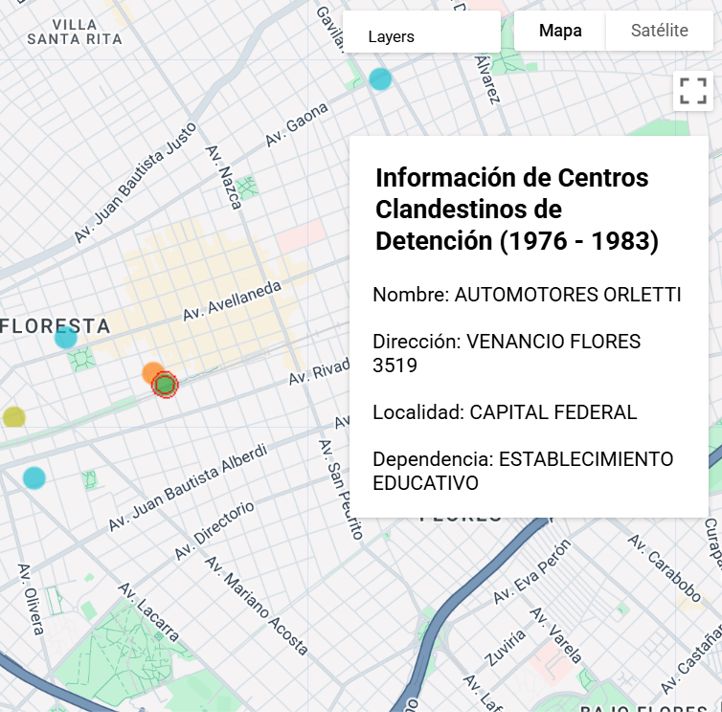 Lo ideal sería adosarle a cada CCD toda la información que exista de cada uno: fecha de funcionamiento, represores involucrados, cantidad de detenidos, desaparecidos, causas judiciales asociadas, condenas, etc. La idea es que este mapa sea dinámico, no deje de absorber información y sea, cada vez, más grande.