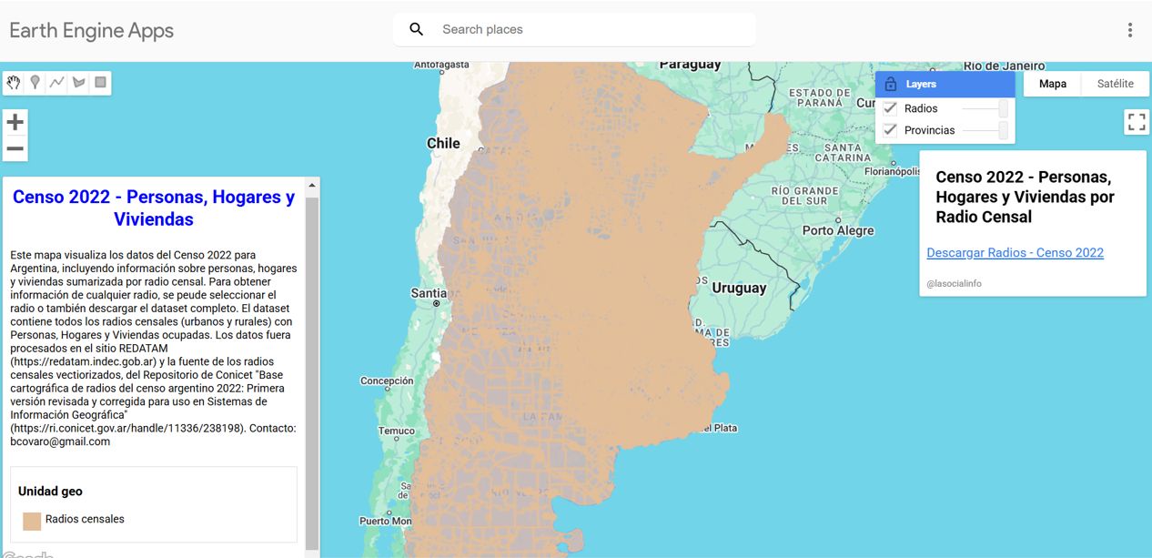 A partir de mensajes varios de investigadores, trabajadores, entusiastas, etc, acerca de la necesidad de utilizar la App de datos del Censo 2022 por radio censal como insumo de trabajo y fuente de datos (y aprovechando que el público se renueva), hice algunas adiciones a la App.